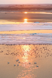 ◎ 這是四月四日在松花江富錦段一處水域拍攝的天鵝和其他候鳥(無人機照片)。近日,隨著氣溫回升,黑龍江省佳木斯市境內的松花江富錦段冰融水暖,迎來大批北歸天鵝。開化的水域成為候鳥的樂園,為春日江畔增添了勃勃生機。新華社發(曲玉寶 攝)