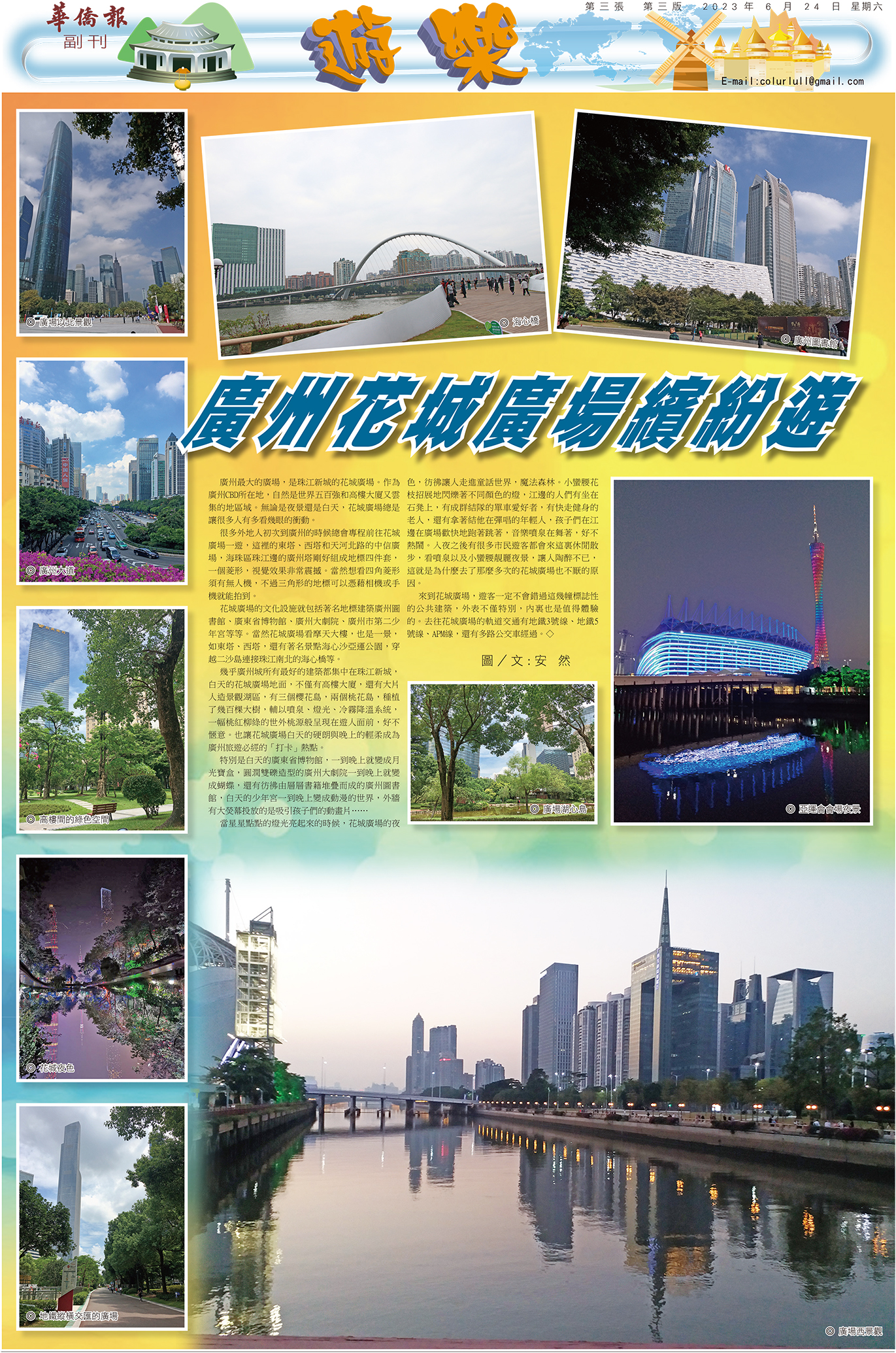 幾乎廣州城所有最好的建築都集中在珠江新城,白天的花城廣場地面,不僅有高樓大廈,還有大片人造景觀湖區,有三個櫻花島,兩個桃花島,種植了幾百棵大樹,輔以噴泉、燈光、冷霧降溫系統,一幅桃紅柳綠的世外桃源般呈現在遊人面前,好不愜意。也讓花城廣場白天的硬朗與晚上的輕柔成為廣州旅遊必經的「打卡」熱點。