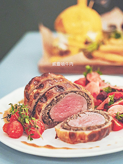 威靈頓牛肉,芝士牛肉漢堡加瀑布芝士醬,慢煮18小時燒烤豬肋骨,24個月西班牙黑毛豬火腿芝士披薩,法式疏乎厘。
