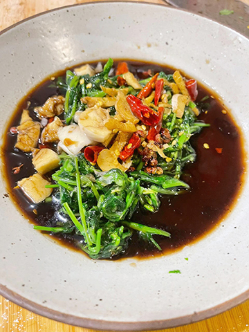 我忽然想起去北京找老閨蜜玩,昌平九公山,位於北京市懷柔區的渤海鎮,也看過二月蘭,而且還吃過它們。這美得像畫的二月蘭,就在昌平山裡採的,老閨蜜洗淨切段,用薑蒜醋幹辣椒花椒,加點醬油調味小碗備用,等熱油,再將切好的二月蘭焯水2分鐘,撈起備用。熱鍋加油,油淋之前做好的調味小碗,再倒入焯過水的二月蘭,拌一拌,就好看又好吃!美得像畫,美味得不像話。