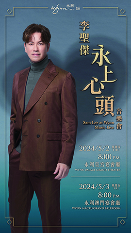 永利於5月3日晚上8時在永利澳門宴會廳呈獻「李聖傑『永上心頭』音樂會」。李聖傑演繹金曲:《不顧一切的愛》、《手放開》、《你那麼愛她》及《癡心絕對》等。