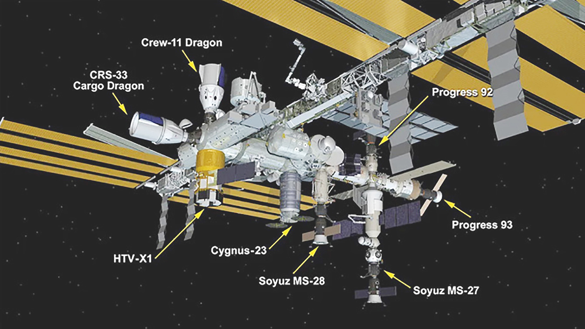 自二000年十一月首次有客人入住以來,國際太空站至今一直有船員駐守,有時會更繁忙,目前共有八艘太空船同時停靠於國際太空站,佔用全部對接端口。根據美國太空總署(NASA)報道,此為國際太空站廿五年來首度出現的情況。上述八艘太空船是包括兩艘SpaceX天龍號太空船、一艘日本JAXA的HTV-X1貨運船、兩艘俄羅斯航太聯盟號載人太空船、兩艘進步號貨運船及一艘天鵝座 XL 貨運船。以下將會簡述各太空船的目前狀態。
