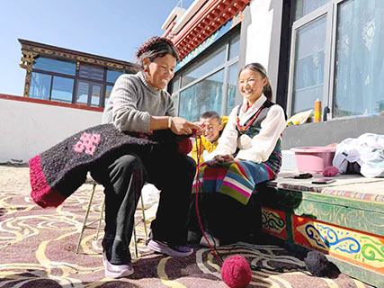 薩迦縣的次仁卓瑪,家庭收入來源與康孔村的次仁卓瑪家相似。日喀則農事新年即將到來,她打算把親戚朋友們請來熱鬧過年。次仁卓瑪擅長做手工,早在建房時就開始為新家編織藏毯。入住後,一家人又細心裝修了一番。今年,她為自己添置了一條漂亮項鏈,作為新年禮物。