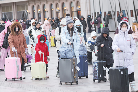 廣州「電競+文旅」打造潮流文旅新體驗 北京大風寒潮發力 廣東已建低空起降點超三千五百個 去年民用無人機產量超六百九十萬架 湘古法紅糖香飄六百年 鄉村振興釀出新「蜜」業 台灣17歲少年掃射茶行25槍 警方懷疑有人教唆 台建築師團隊助閩佘村煥新顏 北京大風寒潮發力 2026-02-07 03:30:00 ◎ 二月六日,受寒潮天氣影響,北京最高氣溫跌至冰點以下。圖為從北京站出站的旅客匆匆趕路。(中新社記者 賈天勇 攝)