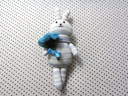 (六)將手部布和腳部布各自重疊並以平針的方法縫製,完成後翻回正面及塞滿棉花。