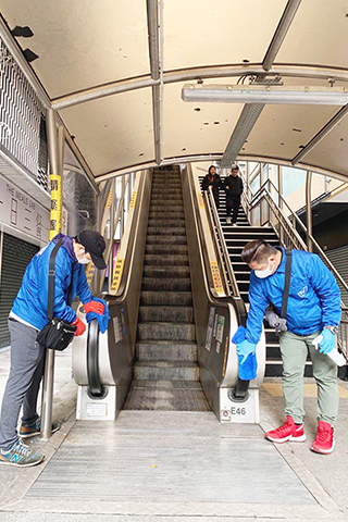 【特訊】為落實特區政府對新型冠狀病毒肺炎的防控工作,市政署採取一系列措施,持續加強公共街道及設施的清潔及消毒工作,以稀釋的漂白水清抹行人道欄杆及行人天橋扶手梯等,保障設施衛生。