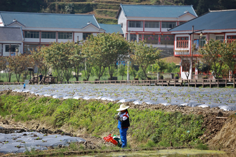 ◎ 本月十四日,一位花茂村村民在農田裡。(新華社記者劉續 攝)