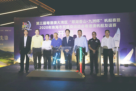 【記者陳藝珠海報道】十一月二十日晚,二零二零年第三屆粵港澳大灣區「翠湖香山·九洲杯」帆船賽暨二零二零年珠海市民健身運動會粵港澳帆船友誼賽開幕式在珠海度假村舉行。廣東省帆船協會會長林雄,珠海市文化廣電旅遊體育局副局長、珠海市體育總會會長鄔向明,廣東海上項目訓練中心主任楊健立,廣東省青少年訓練競賽中心副主任姜勇軍,澳門風帆船總會主席蘇光輝,珠海九洲控股集團有限公司黨委副書記、副董事長張險峰等出席了開幕式。