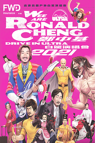 「Wee are Ronald Cheng Drive in Ultra鄭中基自駕演唱會2021」將於2021年4月24及25日假中環海濱活動空間舉行,票價分別設有座位1080元、880元及車輛套票6000元,門票在今(26)日正式公開售票。演唱會海報日前已曝光,海報上有多個鄭中基裝扮成各款動漫及電影角色的畫作,貫徹Ronald的玩味風格之外,也切合了「人人都是鄭中基」的主題。