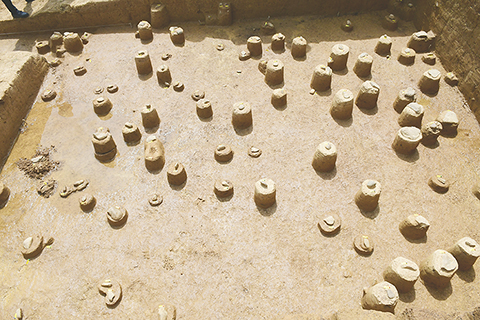 ◎ 這是二0二一年十月九日在湖南澧縣澧陽平原考古工作站拍攝的雞叫城遺址出土的陶器。(新華社記者薛宇舸 攝)