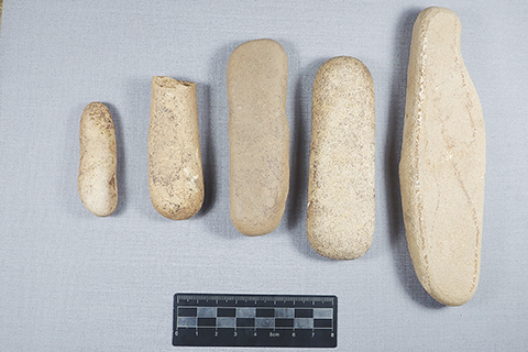 ◎ 河南南陽黃山遺址出土的石質制玉工具——系列石銼(二0一九年一月八日攝)。新華社發(河南省文物考古研究院 供圖)
