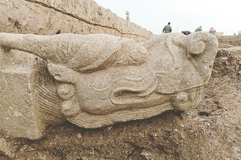 ◎ 安徽鳳陽明中都遺址宮殿基址出土的螭首。(中新社發國家文物局 供圖)