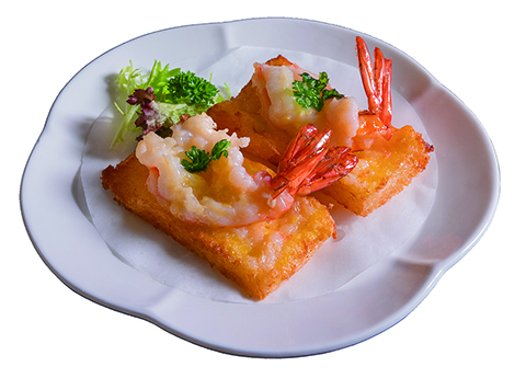 懷舊蝦多士以原隻鮮味彈牙的鳳尾蝦炸至金黃酥脆,配合香口鬆脆的多士,深受大人和小孩喜愛。