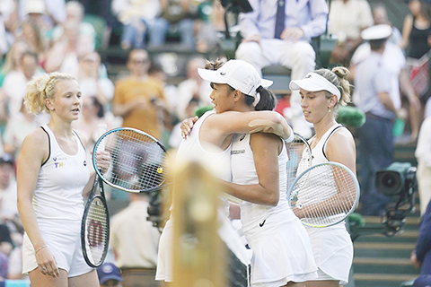 「對這樣的結果我能接受,通過比賽看到自己還可以提高的空間,看到與對手的差距。」現世界雙打排名第二位的張帥說。至於草地大滿貫的決賽,她希望這不會是自己唯一一次體驗。「我覺得那個獎盃很好看。我也給自己設立了目標。」