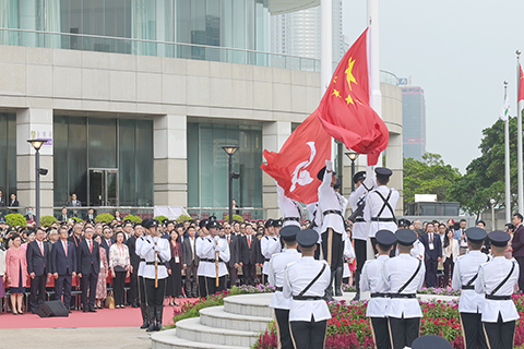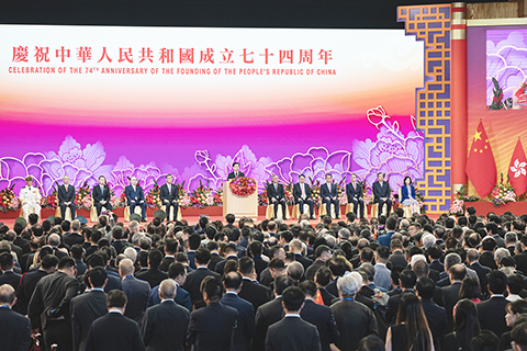 【中新社香港十月一日電】(記者 韓星童)香港特區政府一日上午舉行升旗儀式和酒會,慶祝中華人民共和國成立七十四周年。
