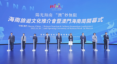 是次活動昨下午假美獅美高梅劇院舉行。中聯辦副主任呂玉印,澳門社會文化司司長歐陽瑜,立法會議員、中旅董事長張健中等澳門和海南政府及旅遊和文化業界代表出席推介會和開幕式。◇