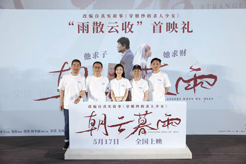 《朝雲暮雨》改編自真實故事《穿婚紗的殺人少女》,范偉飾演刑滿釋放的56歲的老秦,想要娶妻生子開啟新人生。而周冬雨飾演的女孩常娟,出獄後急需用錢,兩個「同是天涯淪落人」開啟各懷鬼胎的「利益婚姻」,「老少配」出人意料。
