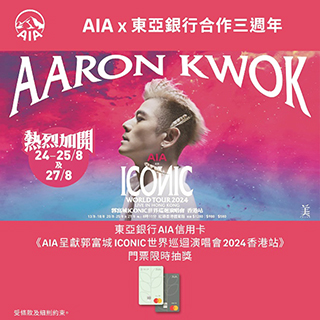 全城期待的《AIA呈獻郭富城ICONIC世界巡迴演唱會2024香港站》今個暑假將於紅館隆重登場!而為了慶祝AIA與BEA東亞銀行合作三周年,我們攜手為大家帶來門票大抽獎,讓大家有機會享受最ICONIC的舞台盛宴!