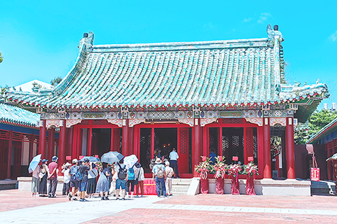 延平郡王祠如今是台南知名旅遊景點。中新社記者當天看到,祭典結束後,持續有遊客前來參觀,有父母向年輕子女介紹鄭成功的歷史。◇