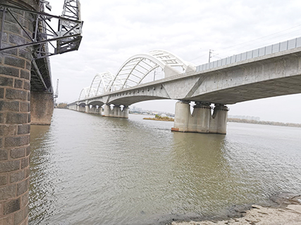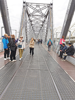 離開太陽島,下一站是處於哈爾濱松花江上的中東鐵路橋。它是哈爾濱重要的地標性建築,始建於晚清時期的1897年,到1901年才正式投入使用,至今已有127年的歷史,它的全名是「中東鐵路哈爾濱松花江大橋」,俗稱「老江橋」,是一座跨越松花江的鐵路橋樑,也是哈爾濱市道裡區和道外區的分界線。全橋採用石墩鋼筋結構,全長有1051米,寬7.2米,共有19個孔洞,它見證了清末、民國、日偽時期和新中國時期哈爾濱市的歷史。隨著與中東鐵路橋相鄰的哈齊高鐵松花江鐵路特大橋投入使用,這座百年老橋終於宣佈退役,停止營運,現在它只是供人們打卡拍照了。