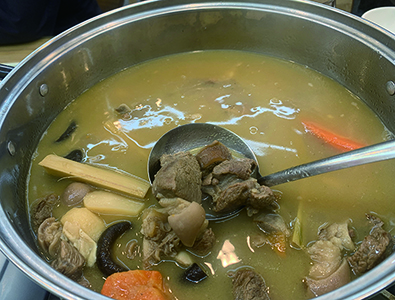 羊肉煲是冬日防寒滋補的好選擇,撈出一塊軟嫩的羊肉,肉香四溢,更有補氣養血、健脾暖胃等功效,三至四人份量羊肉煲僅售一百廿八元,另贈送蔬菜、玉米、支竹配菜。