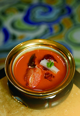 此次聯乘將以香料、手工烹飪技藝與茶文化為核心,呈現各自的招牌菜,頭盤的五道小菜包括泉州的紫菜及黃魚,以及廣東的生曬金蠔等。主菜部份,楊師傅將攜「福滿樓」團隊帶來「福滿樓」的招牌「風味薑母汁扣關東遼參」、「鷺島沙茶汁藍龍蝦」。將「金殿堂」一手打造為黑珍珠一鑽餐廳的徐總廚將為是次四手聯乘的晚宴呈上包括招牌湯品「海苔黃耳燉鮮角螺」,以及選用成都臘肉為「煙燻臘肉油雞樅炒糯米飯」增香添彩;甜品方面,選用番石榴及胡椒等經海上絲路貿易而來的食材,推出改良自楊枝甘露的「胭脂石榴蘭香露」,以及結合辛香胡椒和廣東麻蓉的「胡椒麻蓉酥」。