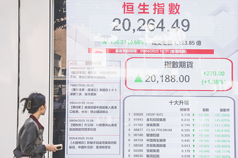 【香港中通社4月9日電】(記者 徐嘉儀)美國向所有中國商品徵收104%關稅,美股急升後倒跌,惟市場憧憬內地政策,在A股拉升帶動下,恆生指數收市報20264點,升136點。大市成交額為4123億港元。