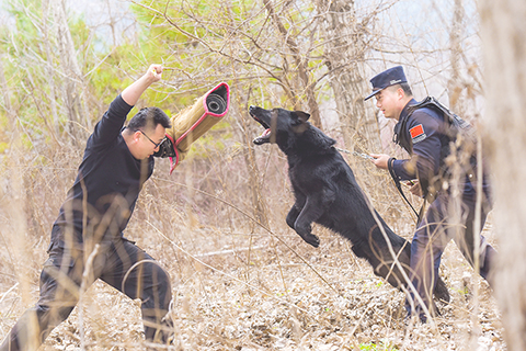 ◎ 四月九日,吉林通化邊境管理支隊榆林邊境檢查站開展警犬春季訓練,包括車輛搜毒、箱包搜爆、指令服從、模擬抓捕、場地障礙等十餘項科目。據了解,該站在春訓中著重強化警犬服從、追蹤、鑒別、搜索、越障等能力訓練,同時還針對複雜環境,提升警犬的適應和應變能力。圖為訓導員在調引警犬。(中新社)