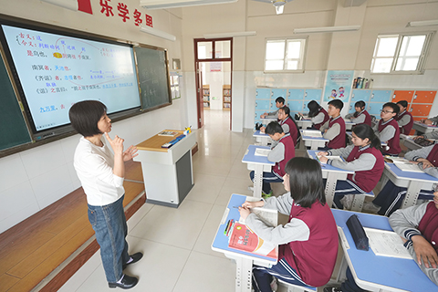 甘肅東鄉:丹霞好似羊肉卷 天津第四屆五大道海棠花節 廣州圖片展紀念辛亥革命 北方花粉過敏高發區發預報 清明:「風清景明處 追思伴春生」 開江魚經濟帶動消費 濰坊市大力實施鄉村學校「五項全覆蓋」工程 2025-04-22 03:30:00 ◎ 四月十七日,在位於濰坊市臨朐縣石家河村的臨朐縣彌水教育集團石家河校區,學生在裝備了觸控一體機設備的教室裡上課。 近年來,山東省濰坊市大力實施鄉村學校「五項全覆蓋」工程,讓義務教育階段鄉村學校基本實現「在校午餐午休、塑膠操場、清潔廁所、觸控一體機教室、標準化校車」五項齊全,有效推動全市義務教育優質均衡發展。(新華社記者徐速繪 攝)