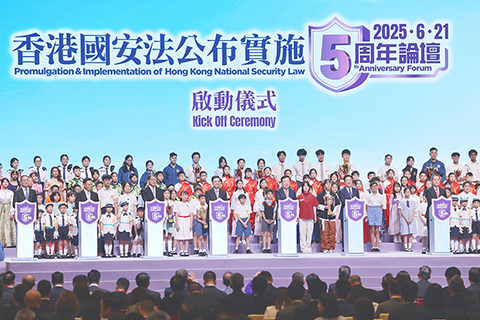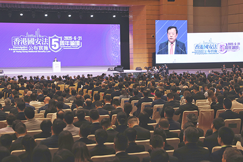 【香港中通社六月二十一日電】(記者 張明臻)六月二十一日上午,中央港澳工作辦公室主任、國務院港澳事務辦公室主任夏寶龍在香港會展中心出席香港國安法公佈實施五周年論壇并致辭。夏寶龍表示,隨著香港國安法的深入實施,香港進入了一個新的發展階段,正處於開創新局面、實現新飛躍的關鍵期。香港特區政府和社會各界必須團結一致、搶抓機遇、擔當作為,更好統籌發展和安全,充份發揮「一國兩制」制度優勢,不斷開創「一國兩制」事業高質量發展新局面。