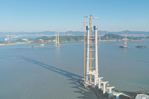 雙嶼門特大橋東主塔封頂