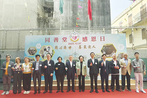 同善堂昨日在堂內舉辦「同善堂感恩日」活動,以感謝各界善長、機構、社團及市民長期以來對該堂沿門勸捐工作的大力支持。活動現場設有親子手作體驗、攤位遊戲、文藝表演等互動環節,更特別增設懷舊小食檔與隨緣樂助區;同時開放同善堂陳列館大堂展廳、二樓文物展示廳,以及學校地面層設施,並安排專人導賞,讓市民深入了解堂史與慈善理念。