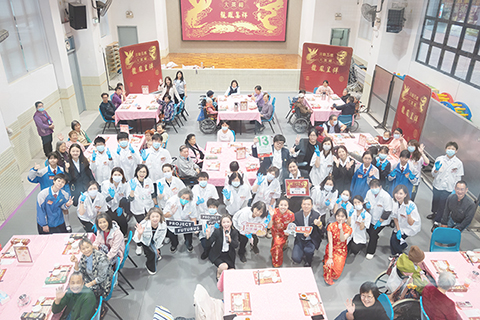活動當日,婦委會委員們參與軟餐製作,親身體驗食物質地改良、營養配比調整等關鍵環節。這種「從厨房到餐桌」的全流程參與,讓委員們深刻理解長者日常進食挑戰。現場,婦委會委員們與青洲中學學生換上傳統茶樓制服,化身「茶樓夥計」,爲長者奉上特製的軟餐點心和熱茶。席間,青洲中學舞蹈隊表演了《活力啦啦操》,隨後的經典粵語流行金曲大合唱,將活動氣氛推向高潮。在委員與學生的帶動下,長者們隨音樂揮動雙手,現場笑聲、掌聲交織,氣氛溫馨熱鬧,活動在全場大合唱的歡樂氣氛中圓滿落幕。◇