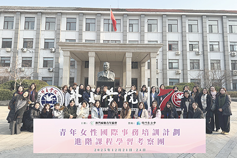 【特訊】澳門婦聯青年協會主辦、澳門基金會贊助的「青年女性國際事務培訓計劃進階課程學習考察團」日前赴京考察。三十四名完成基礎培訓的澳門青年女性學員,經四天專題授課、外交觀摩及實地參訪,系統提升國際事務與跨文化傳播能力,深化愛國愛澳情懷,為融入國家發展大局、講好中國與澳門故事積備力量。