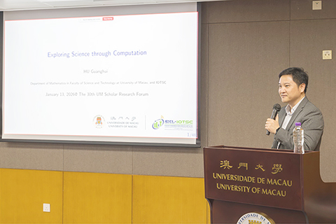 【特訊】澳門大學昨(十三)日舉行「澳大學人研究講壇」第三十講,由澳大科技學院數學系教授胡光輝圍繞「用計算探索科學」發表演說。講座深入探討計算科學作為繼理論與實驗之後的科研「第三範式」,如何深刻重塑現代研究格局。