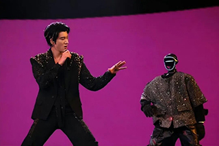 在接下來的時空對話中,二十五歲巔峰期、穿著黑色西裝手持麥克風的數字王力宏,與現場王力宏隔空合唱《你不知道的事》,聲線完美融合;三十九歲嘗試嘻哈與AI音樂、穿著寬鬆衛衣的他,與現在的自己探討科技與人性;四十二歲出演電影《無問西東》、穿著民國學生裝的他,詢問家人是否安好。最終,四個時期的數字分身同時現身,與現在的他形成五重和聲,共唱「最好的地方,是你在身旁」。數據流在結尾匯聚成金色光芒,AI語音連接至2060年,八十四歲白髮蒼蒼的「自己」溫和叮囑:「別忘了初心,音樂是永恆的。」現在的他輕聲回應:「我會帶著所有的回憶,繼續走下去。」這不僅是一場技術展示,更是一次關於王力宏的生命回顧與自我和解。