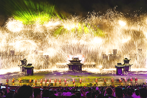 打鐵花在景區的呈現形式正越來越豐富。例如,2025年1月,河北唐山河頭老街的《唐王東征》實景演出首演,將打鐵花化為沙場烽煙,與戰馬嘶鳴、將士呐喊交織。