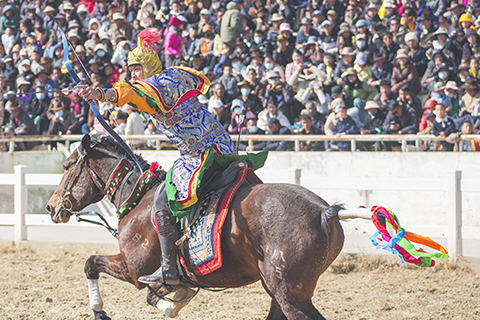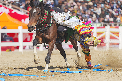 西藏:馬年新春 馬上過年 2026-02-23 03:30:00 二月二十日是馬年大年初四,藏曆火馬年大年初三,拉薩市北郊賽馬場舉行了民族傳統馬術表演暨民族賽馬活動。馬術隊員策馬揚鞭,一展技藝,以精彩的馬術表演獻禮馬年新春。(新華社記者 丁增尼達 攝) ◎ 二月二十日,馬術隊員在表演馬上技巧。 ;