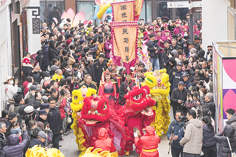 ◎ 二月廿五日,演員在無錫梅村泰伯廟會進行民俗巡遊。當日,梅村泰伯廟會在江蘇省無錫市新吳區舉行。據介紹,每年農曆正月初九,無錫梅村都要舉行泰伯廟會,紀念泰伯奔吳。本屆廟會以「奔吳」為主題,融合民俗巡遊、非遺展演、文化市集等,展現當地吳韻特色,吸引眾多市民和遊客前來觀賞。(新華社記者李博 攝)
