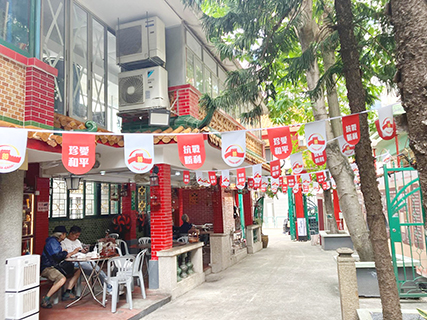 昔日無遮無擋,空曠開放的籃球場,現已圍上鐵絲網,剩餘地段,變成花園茶座,豎有牌坊一列;平庸窄小的蓮溪廟,香火依然,古色古香。我所熟悉的人人茶樓、蓮昌餅家、嘉樂飯店、大聲公涼茶,乃至文化文具店……早已蕩然無存;猶幸盛記白粥、麗斯攝影、偉記百貨、建新傢俬、永樂戲院……。仍留痕跡。