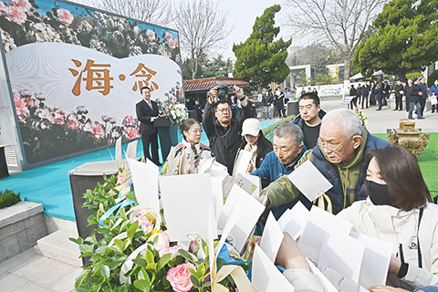 ◎ 三月廿七日,在青島市殯儀館海葬廣場,海葬逝者家屬在追思活動啟動儀式上獻上寄語。當日,青島市舉行以「清風寄思滄海為念」為主題的二零二六年海上追思活動,部份海葬逝者家屬出海緬懷故人、寄託哀思。據了解,青島市從一九九一年開始開展海葬服務,已累計送別三萬五千名逝者魂歸大海。(新華社記者李紫恆 攝)