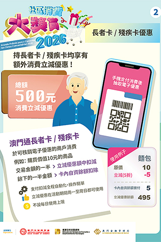 經科局於講解會上介紹是次活動兩項重點優化措施及安排,包括:(一)活動調整為「周末抽券、平日核銷」的模式,即於每周五至周日抽取電子優惠獎,並在周一至周四核銷電子優惠;(二)持殘評證人士改為以「澳門通殘疾卡」領取額外的500澳門元消費立減優惠,無須再額外領取關愛卡;同時,長者及持殘評證人士均可憑有效澳門通「長者卡」或「殘疾卡」,於本澳逾100個指定服務地點拍卡領取上述額外優惠,務求便利合資格人士參與及受惠。