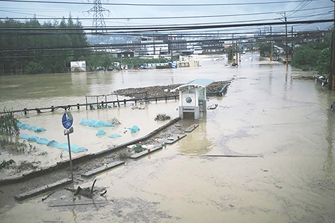 台灣苗栗多處地區積水成災 2026-04-05 03:30:00 ◎ 台灣受鋒面過境影響,四月四日苗栗地區一夜之間降下破百毫米大豪雨,導致多處地區嚴重積水成災,路面完全被黃土色泥水淹沒,車輛無法通行。市區道路同樣災情慘重,有騎士冒險涉水行經淹水路段,激起劇烈浪花,積水深度已危及行車安全。(香港中通社圖片)