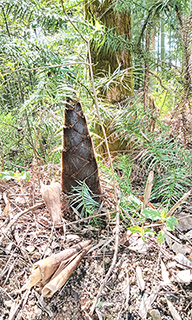 春筍是不是都會長成竹子呢?理論上是如此。實際情況卻又千差萬別。如果竹山的主人需要曬一些筍乾,在筆者的老家,也叫乾筍。是一道不可多得的美味佳餚,在鄉村的酒席桌上,總是頻頻出現。用豬油清炒,異常爽口、開胃,深受民眾喜愛。就會把生長在路邊、田地邊,有礙通行或者耕種的春筍,挖掉。還有成片生長出來的春筍,竹山主人認為生長過密,也一定會挖掉其中一些。在我們那兒,找冬筍,就叫挖。而採春筍,則叫打。好些長出地面一兩尺高的,無需動鋤頭,直接用鐮刀砍。根部過老,就遺棄不要,只取筍尖部分。