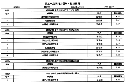第十三屆澳門太極拳、械錦標賽