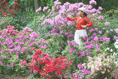 ◎ 四月二十日,江蘇南京,市民在中山植物園盛開的花卉旁留影。當日是中國二十四節氣中的穀雨,花開正艶,花香四溢。(中新社記者 泱波 攝)