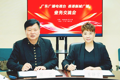 馬浚偉等新城管理層獲廣東廣播電視台副台長周煒熱情接待。在雙方領導的共同見證下,由新城廣播有限公司總經理—項目及商業事務朱靜宜,與廣東廣播電視台音樂之聲副總監陳石正式簽署合作備忘錄。該備忘錄確立雙方在內容共享、資源互補及聯合製作等層面的長期戰略伙伴關係,旨在攜手探索大灣區廣播產業的創新發展路徑。