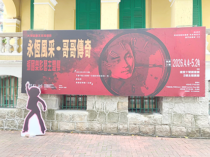 我曾造訪婆仔屋,卻不知道瘋堂創意園。為紀念張國榮七十冥誕,首次踏入這幢米黃色的南歐建築。甫進門,是一張黑底血紅的巨型海報,年青俊朗的哥哥,臉帶憂鬱,矗立眼前。