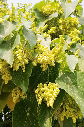 血桐,中藥名。為蓮葉桐科植物蓮葉桐的葉或種子。分佈於台灣南部。具有瀉下通便,抗癌之功效。常用於大便秘結,惡性腫瘤;亦用於神經系統及心血管系統疾病。常綠喬木。樹皮光滑。單葉互生,心狀圓形,盾狀,葉柄幾與葉片等長。聚傘花序或圓錐花序腋生;花梗被絨毛;花單性同株,兩側為雄花,具短的小花梗;果為一膨大總苞所包被;種子一粒,球形,種皮厚而堅硬。