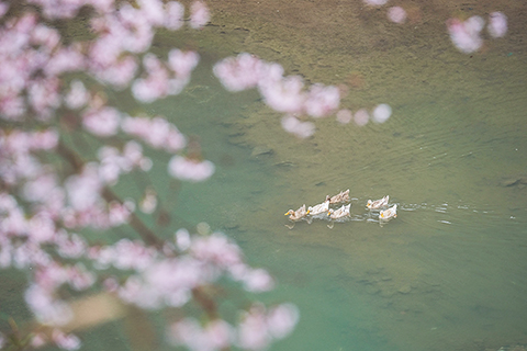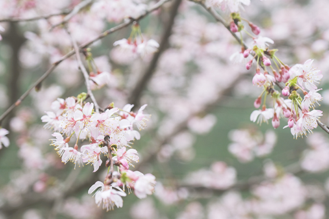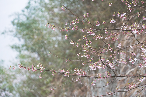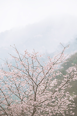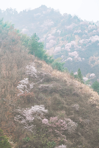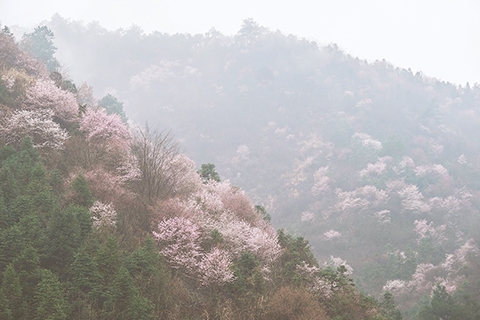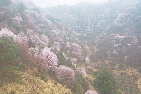 ◎ 在建德市三都鎮大唐村拍攝的野櫻花。大唐村山野間連綿數十里的野櫻花紛紛盛開,或粉或白,構成了春季美麗風景。